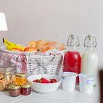 Ten hotel oferuje śniadanie ze świeżymi ciastkami i świeżymi owocami.